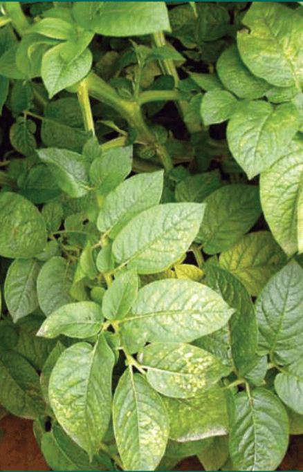 На листьях картофеля, в первую очередь нижнего яруса, ярко-жёлтые пятна различного размера и формы двух типов: крупные, чётко ограниченные пятна, иногда захватывающие долю листа целиком, или пятна меньших размеров, располагающиеся между жилками по обе стороны средней жилки, и многочисленные переходные формы. Впоследствии пятна имеют вид сухих бурых углублений. У клубней – внутренний некроз в виде дуг, сетки или трещин. Симптомы обоих вирусов на картофеле сходны, и их дифференцируют путём заражения индикаторных растений. Вирус F может также давать слабую мозаику и бессимптомное заражение.
